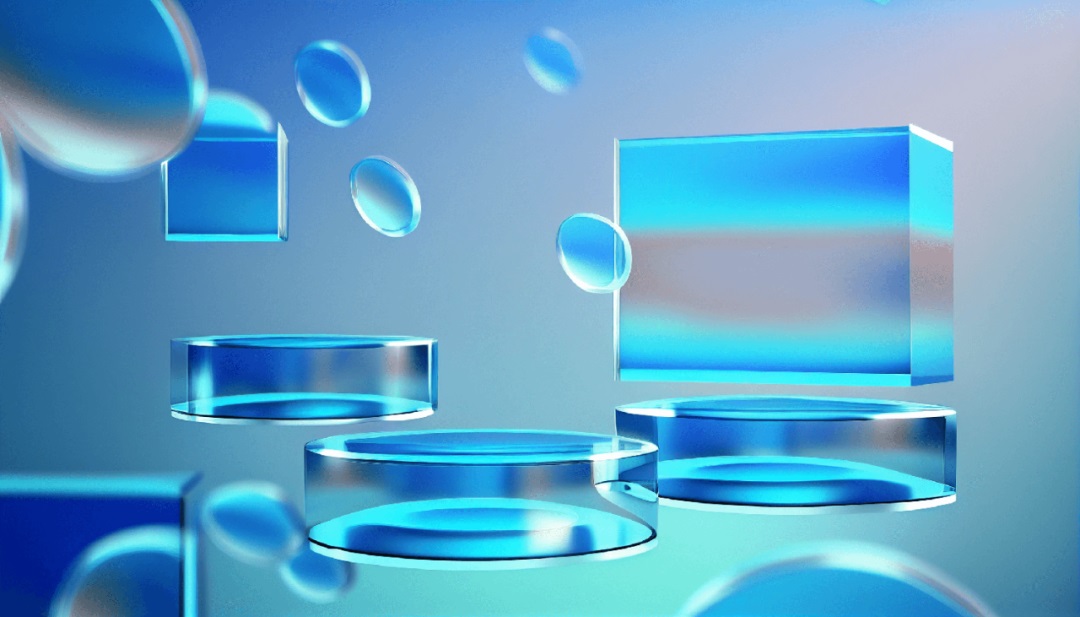 (一张带有玻璃质感元素的背景图,浅蓝色背景,居中构图,超广角镜头,3D 渲染,干净,16:9 尺寸,画质为 5)